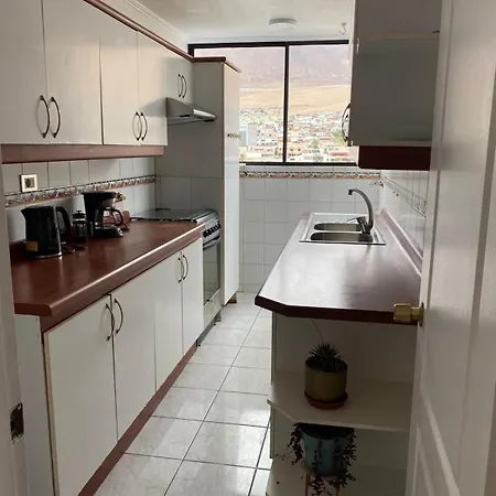 Departamento Comodo En El Sector Sur Iquique apartment is located 4.8 km from Alto del Molle train station and merely 6 minutes' walk from the Bicentennial Historical and Cultural Park of Punta Gruesa. Guests can lounge by a swimming pool before taking a cooling dip.